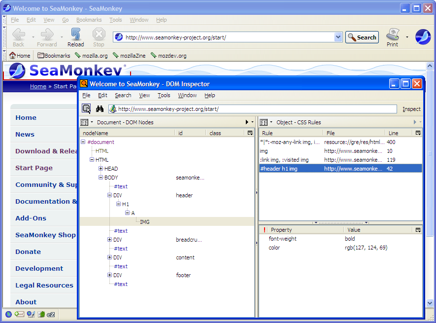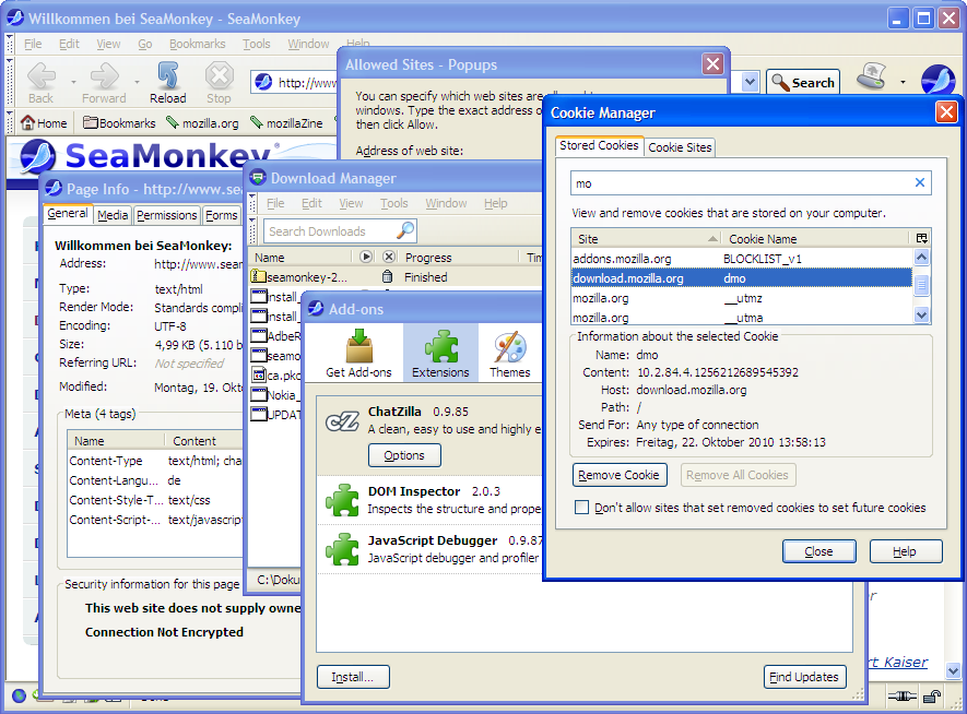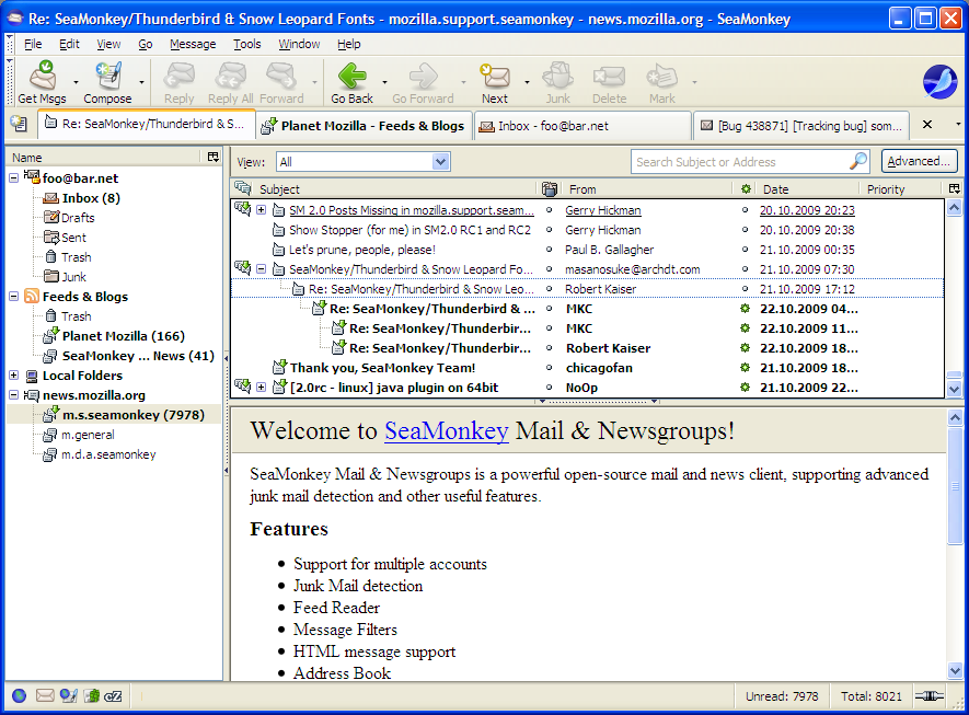 The screenshots below show SeaMonkey 2.0 in action on a Windows XP computer.