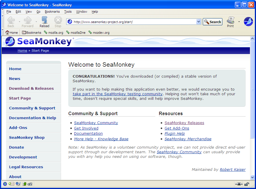 The screenshots below show SeaMonkey 2.0 in action on a Windows XP computer.